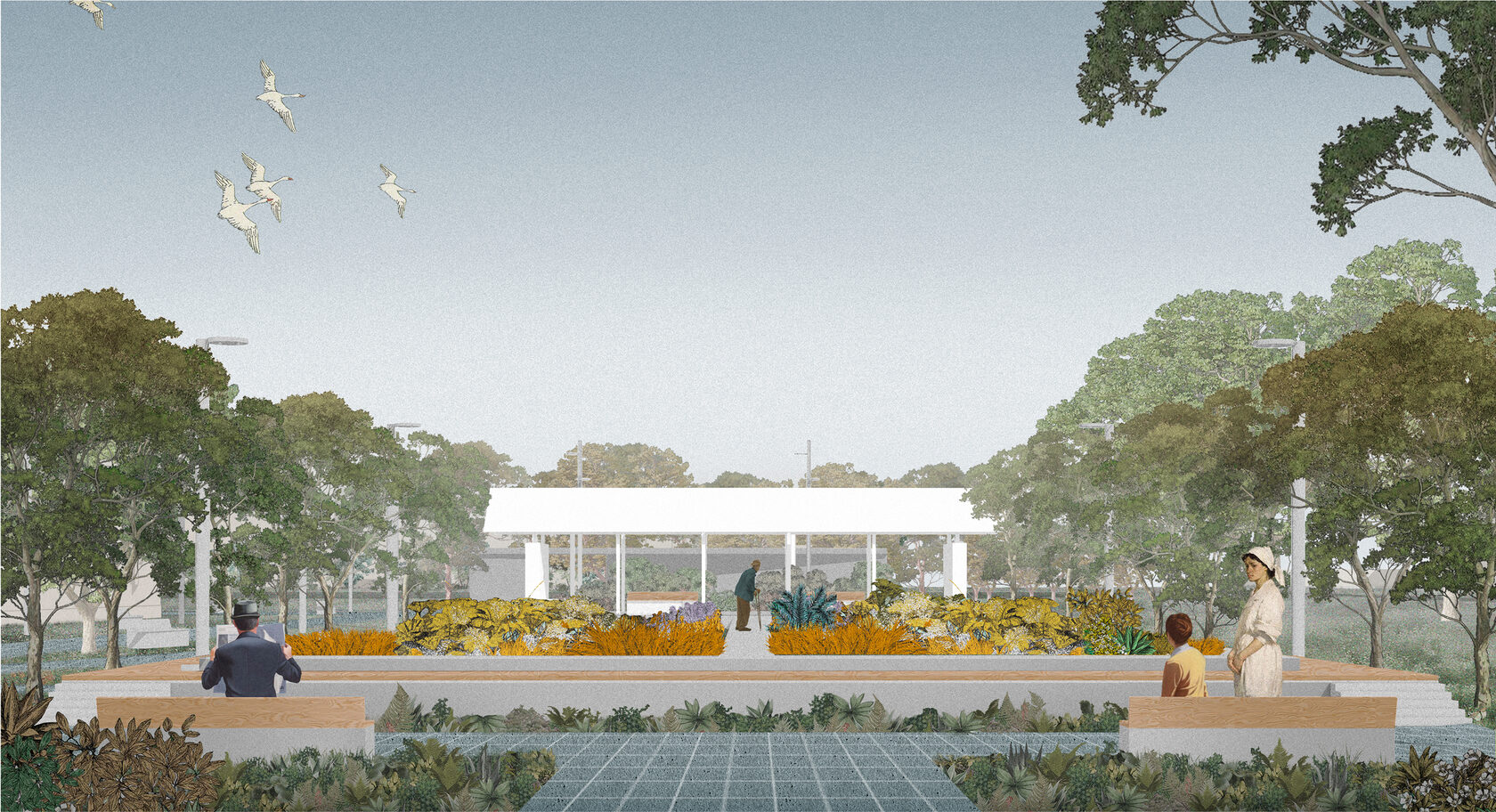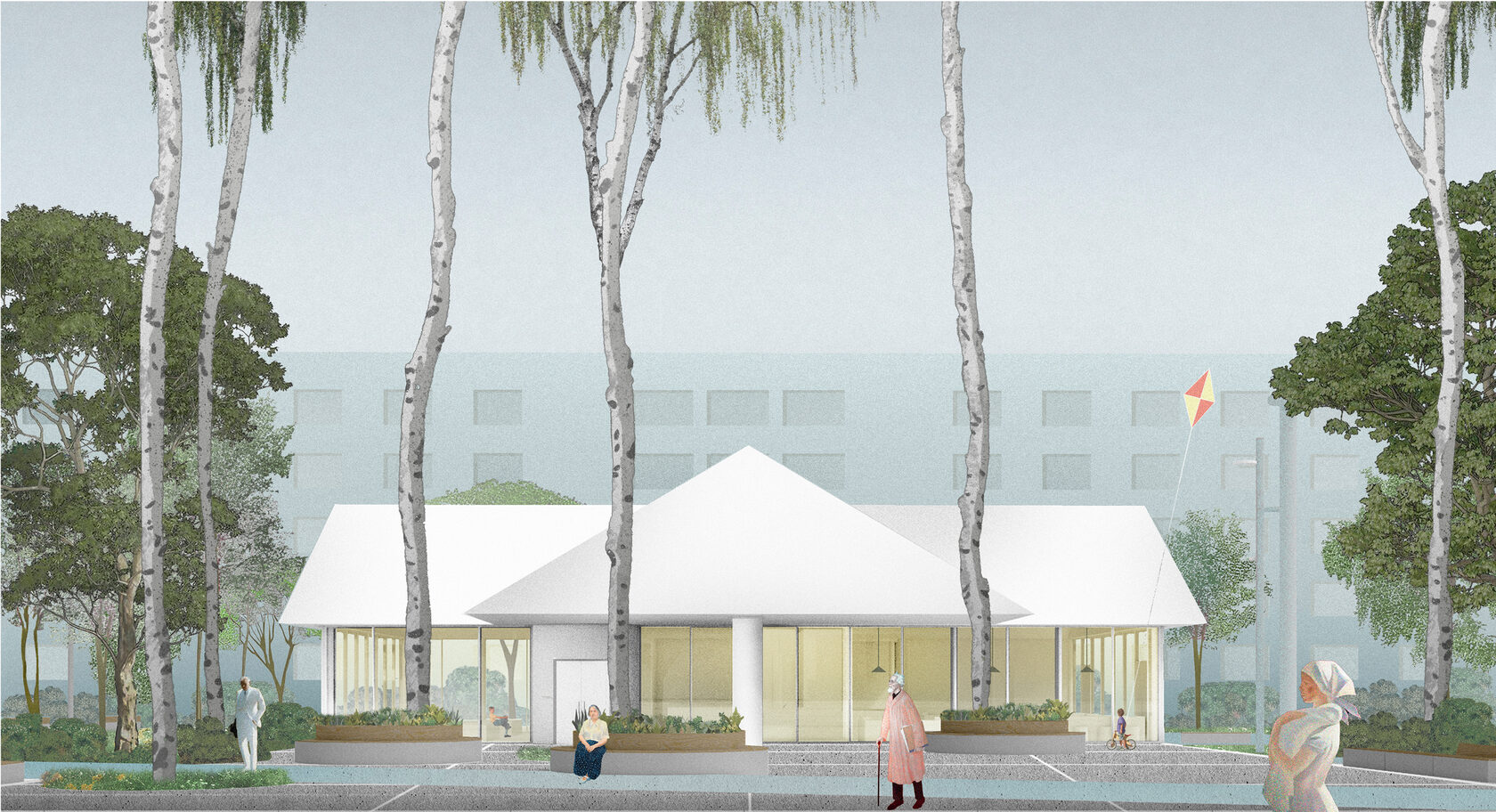 Появление функциональных «садов» — особых уединенных пространств, связанных с конкретной темой больничных корпусов. Сад памяти, сад детства, собственный сад, гостевой сад. Последний включает строительство павильона-гостиной, который должен выполнять часть функций приемного отделения и служить местом встречи.